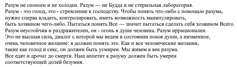 “То, что можно утверждать без необходимости доказательств – можно бездоказательно отвергнуть” – популярный меметически мощный лозунг поклонников разума. Его приятно произносить или мыслить. Но вот мое предложение: в ответ на это можно просто взять и поверить. И что ты мне за это сделаешь? И кто меня остановит? Я собираюсь поверить и ты ничего не сможешь сделать для того, чтобы остановить меня. Заставь меня, сука.